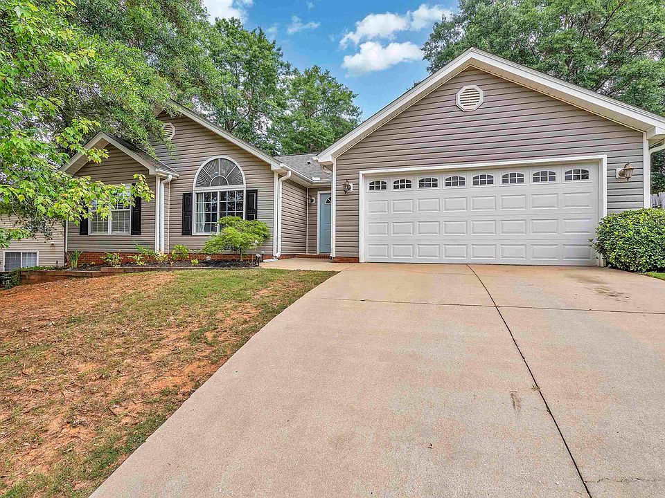Located in the popular Riverdale neighborhood, this one level home will be at the top of your list! Through the front door you’ll immediately notice all the natural light along with the expansive open floor plan and a great entry for greeting guests! The living area features a gas log fireplace with decorative mantle and access to the back yard patio area. The dining area is large enough for entertaining while keeping the serving and prep work easy with the shared kitchen space! Tons of cabinets and counter space in this newly UPDATED kitchen featuring white cabinets and stainless steel appliances along with a newly installed coffee bar/ serving nook with pantry space. The natural earth tones of the cabinets, shelving and floors create the perfect modern farmhouse vibe! This split floor plans features a huge master bedroom ensuite with UPDATED master bath. This spa-like bath has furniture style sink/ cabinets with gold faucets and trim that have been painstakingly picked for perfection! The additional two bedrooms are perfectly proportioned with good closet space and share a hall bath that has also been completely UPDATED! From the new floors to the updated hardware, this home has been remodeled and updated to perfection and is truly MOVE IN READY! As good as the interior is, the backyard will quickly become your favorite place! With ADDED 18x23 patio space you have the perfect spot to relax and enjoy the outdoors. The fenced yard allows for plenty of play space or room to garden and the mature trees and landscaping provide just the right amount of shade! Located 5 mins to downtown Greer, close to BMW manufacturing plant, the airport, and all major highways, this location couldn’t be any better! The surrounding restaurants and dining are all just a quick jump along with easy access to top notch medical facilities and schools! With recent updates that include, flooring, kitchen remodel, NEW ROOF in 2023, NEW HVAC in 2022, new garage doors and an expanded 6x12 patio the work has all been done!! Enjoy living in a community that offers a large fishing pond for residents, community pool and a walkable neighborhood! Don’t miss this one! Welcome home to 628 Geranium Lane located in beautiful Lyman, South Carolina!