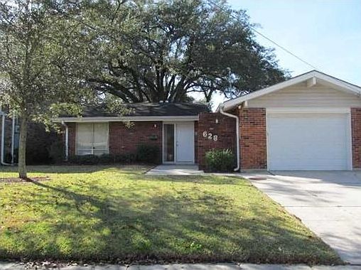 Welcome to a cozy community home, original owners and has never flooded. Home has great bones to make your own, nice flow in large living- dining room extending to kitchen then to den with fireplace all for your comfort and entertaining. Lots of light from both dining room and den with French doors, show casing a oak tree shaded yard, three bedrooms with two baths. Garage has workshop with work bench and tons of cabinets.
