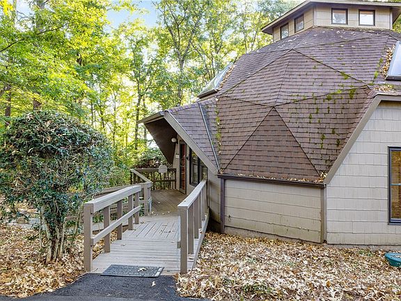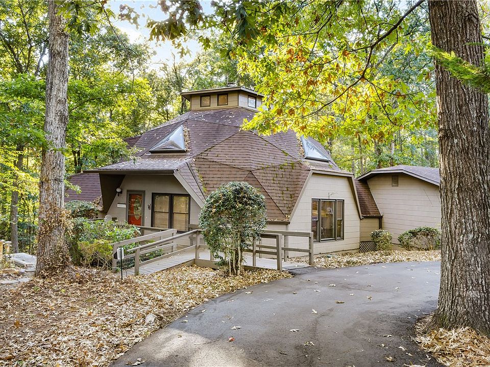 Lake Martin Access! Are you tired of searching for waterfront property within your budget...let's try this one that offers access, water view, a fenced park , boat ramp, and picnic area with swings. This multifaceted dome shaped home offers so much room and has the best get-away vibe you can find. A look out the front door offers a private setting with a peak of the lake. The primary suite located on the main floor has a bath, and a private deck that is calling your name for lazy weekends at beautiful Lake Martin. Oh wait...just off the back of the home is another deck that has a private side yard with trees and another peak at the lake. Just up the stairs you will find 2 additional bedrooms and a bath. Don't forget to look up at the skylights and the unique cupola with wood beams. A double garage for your car, golf cart and carport for your boat. Also, just in case, make sure you check out the underground storm shelter and the basement area. The uniqueness of this home is off the chart! Its possibilities are unlimited at this beautiful little getaway home! It's waiting for you to make it yours!