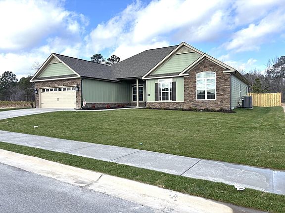 Discover unparalleled luxury living in the exquisite 4-bedroom, 2.5-bathroom Cameron-16 design by Bill Beazley Homes. Nestled in the desirable Hayne's Station community, this over 2900 square feet residence unveils a harmonious blend of modern design and timeless elegance, offering a lifestyle of sophistication and comfort. Step into the inviting foyer with elegant waterproof click flooring that flows into the great room, dining room, kitchen, breakfast area, and laundry room. Entertain your family and friends in the grand great room with its fittingly located wood burning fireplace. The gourmet style kitchen is a chef's delight, featuring granite countertops, full tile backsplash, soft close cabinetry, stainless steel GE appliances, double ovens, and a large fashionable island perfect for culinary creations and causal gatherings. Round out your day by unwinding in the luxurious owner suites, complete with a seating room accompanied with direct access to the backyard patio, and a beautiful electric fireplace to serve as a serene escape from life's day to day hustle and bustle; enjoy the large walk-in closet and an en-suite bathroom with an even larger walk-in closet. The home secondary bedrooms provide ample space for family and guests. Built with sustainability in mind, this home boasts several energy efficient systems, as well as a smart home security system, landscaped yard with automatic sprinklers and a fenced in backyard. The community amenities consist of a resort style pool, a Junior Olympic pool, streetlights and sidewalks for enjoying long walks on a beautiful day. Approximately 2-miles from Fort Eisenhower military base and conveniently located near I-20, I-520, shopping centers and restaurants. 625-HS-7009-00