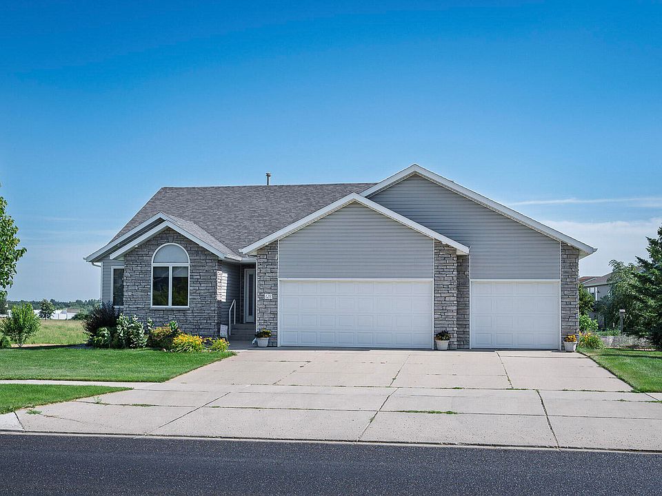 ATTRACTIVE & COMFORTABLE! Ranch style in a high-desired NW Bismarck neighborhood, by Horizon Park and Horizon Middle School. Curb appeal with beautiful established landscaping, underground sprinklers, deck with open countryside views, and custom stone patio with built-in seating. Inviting interior with knotty alder woodwork, warm paint colors, gas fireplace in the living room, cathedral ceiling, dining room access to the deck, main floor laundry room with cabinets, and delightful kitchen with knotty alder cabinets, snack bar for stools, pantry, tile backsplash and under-cabinet lighting. There are 5 bedrooms & 3 baths total (3 main floor bedrooms) including the master bedroom with lots of natural light, en-suite & walk-in closet. The finished basement has a massive family room/rec room with wet bar, above-ground windows and plenty of space for a game table. The finished triple attached garage has hot/cold water & floor drain. See this one today!