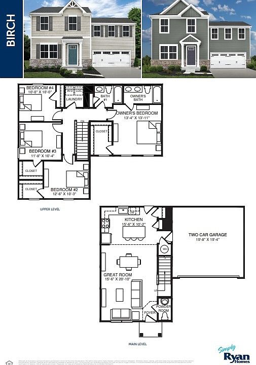 The "Birch" is buildable floor plan offered by Ryan Homes in the Hammons Farm community. Photos in this listing only show potential selections and are not a representation of an exact structure built in the Hammons Farm community.