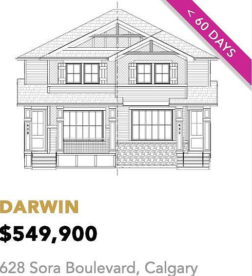 *Photos are representative - some finishes may vary* Welcome to 628 Sora Boulevard! This kitchen is a standout: modern quartz countertops, soft-close cabinetry, stainless appliances, plus a generous island that works for meal prep, homework, or hosting friends-all while staying connected to the rest of the main floor through the open plan. Engineered hardwood on the main level adds durability and an upscale feel that stands the test of time. On the upper level, the primary suite provides a private retreat with ensuite and walk-in closet. Two additional bedrooms offer flexibility-space for kids, guests, or a home office. Upper-floor laundry makes daily routines easier. The basement side entry adds incredible long-term value-offering the potential for a private suite or income-generating space down the road. With no condo fees, the peace of mind that comes with a new-home warranty, and thoughtful features throughout, this home is built to give strong long-term value and low maintenance. Situated with easy access to Deerfoot and Stoney Trail, commuting is simplified. Nestled directly across from the wetlands, walking paths, and green space, this home delivers a lifestyle that balances nature, convenience, and investment potential. *** The First-Time Home Buyers' GST Rebate could save you up to $50,000 on a new home! You must be 18+, a Canadian citizen or permanent resident, and haven't owned or lived in a home you or your spouse/common-law partner owned in the last four years. Terms and conditions are subject to the Government of Canada/CRA rules and guidelines.***