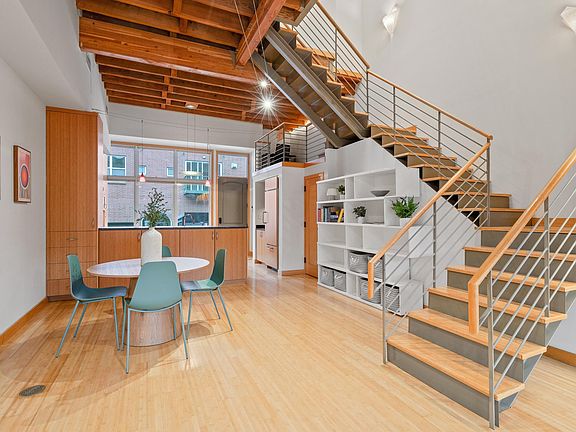 Chic Pearl Townhome within the historic 1908 Burlington Railway warehouse Building. This townhome boasts a private terrace above the streetcar line and a distinctive rooftop deck. Featuring an open floor plan, exposed beams, a cozy gas fireplace, newly installed bamboo floors, cabinets, paper stone countertops, and an island complete with a built-in wine cooler. The second level offers a spacious master suite with a walk-in shower and a guest bath. Enjoy breathtaking city and west hills views from the rooftop deck.
