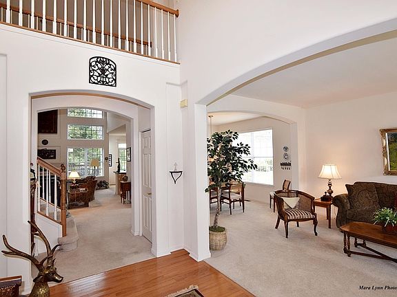 Stunning Fisher Farms Villa home! Open floor plan offers 2-story family room with wall of windows framing fireplace and stunning views from hall above! Rounded drywall and arched openings! First floor Den, full bath and laundry room. Kitchen w/SS appliances, 42" cabinets, island/breakfast bar and eating area with SGD to oversized deck offering water views! Master bedroom suite with vaulted ceiling, atrium door to private deck & luxury bath with soaker tub and separate shower. 3 more generous size bedrooms with vaulted ceilings. Full basement with tons of storage. Convenient location is close to everything!!