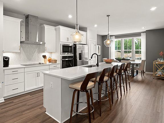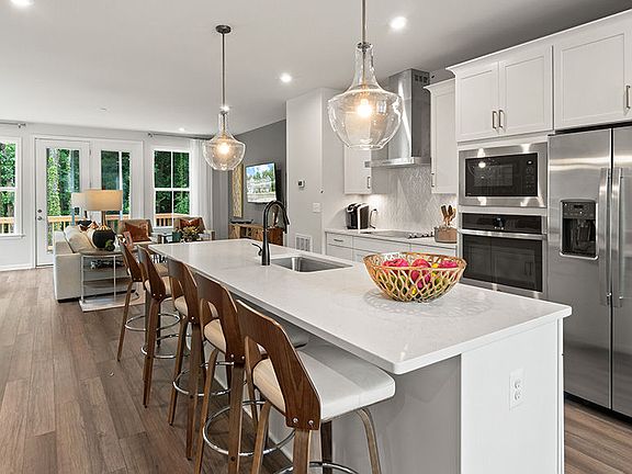 The Balfour demonstrates townhome living at its best. The main level of this home is one that most people dream of. The kitchen features a long wall of beautiful cabinetry and appliances and parallel is an impressive 9' island with sink, dishwasher, and endless prep and cabinet space. You are sure to spend most of your time on the main level, hanging out and entertaining friends and family, but when you venture to the upper and lower levels, you sure won't be disappointed. The upper level features a spacious owner's suite with a large walk-in closet, and owner's bathroom. Two secondary bedrooms are on the opposite end of the home with a shared bath. The lower level features a bedroom suite that is the perfect spot for guests or you can utilize it as a home office, gym, playroom- the options are endless! *Photos are of a similar home.*