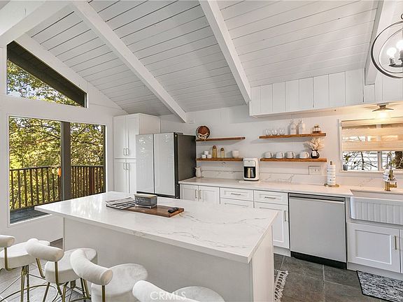 Picture walking into a stunning 1960s cabin with jaw-droppingly high vaulted ceilings, all recently painted a beautiful bright White and, as you slowly move further into the living area, you're hit with the most breathtaking (and totally unobstructed) views of the forest framed to absolute perfection by the classic A Frame windows that tells you instantly: you're in the mountains! Add a fully remodeled kitchen to all that featuring exquisite white quartz countertops with gorgeous flecks of gold that catch your eye, floating shelves and all high-end appliances, a wood burning stove to gather round in winter with your hot chocolate and extra marshmallows which serves as the true "heart" of the home, a surprisingly gentle backyard lot on which to sled with friends and family and true peace and quiet day in, day out? Well, welcome home to "The White Rose of Rose Lane" - your gorgeous Twin Peaks retreat which could be an ideal starter home or a fabulous vacation spot for when you just need to get away from the hustle and bustle of city life and fully recharge with zero distractions. Living here feels as if you're literally sharing the forest with all the wonderful wildlife and nature and there's way more to this than it simply being a pleasant experience. Did you know, for example, that listening to birdsong daily can actually help to calm you by activating the parasympathetic nervous system? After all, there's a very good reason many, many people move to the mountains! Come and check out this unique home which has so much character, charm and offers outstanding value for money. You'll fall in love!
