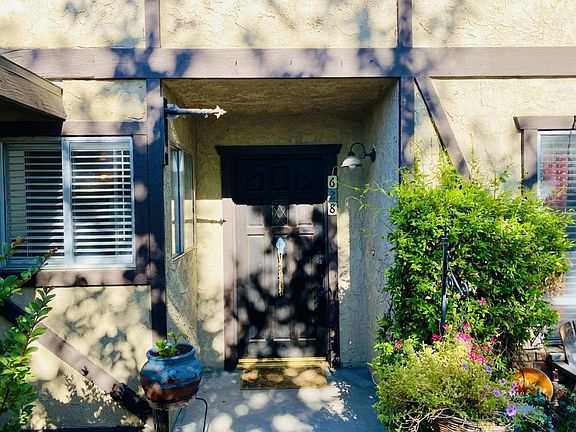 This charming yet spacious three bedrooms two bath ranch-style house is conveniently located in a quiet neighborhood within walking distance of Upjohn Park, restaurants, and shopping. This well-maintained and landscaped home features upgraded amenities, updated finishes, and a new roof. The kitchen features all-new Samsung appliances in a black stainless steel finish, including a refrigerator, oven/range combo, dishwasher, and microwave/hood. The kitchen also features a newly installed sleek and durable white solid surface countertop, refinished white cabinets with simple yet stylish black pulls, a matching low-rise tile backsplash, a new matte graphite sink with a black chef-style faucet, and black industrial pendant lights. Natural oak style laminate covers floors in the kitchen and throughout the house, with tile floors in the hall bath and primary bath. In addition, the den features a vaulted ceiling and skylights (also in the hall bath), while the hallway provides plenty of utility with a large storage closet and linen closet. The primary bedroom features dual closets and a sliding door with access to the rear covered patio. There are too many features to list and much more