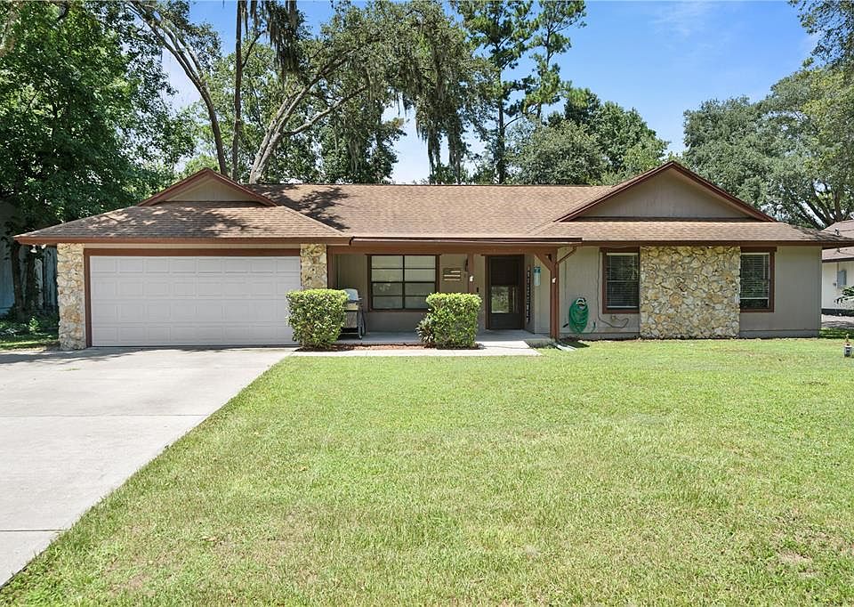 One or more photo(s) has been virtually staged. Step into this delightful ranch-style home, showcasing striking VAULTED CEILINGS with EXPOSED BEAMS for a charming rustic flair. This 3-bedroom, 2-bathroom house comes with a BONUS DEN in the garage, perfect for an office or easily convertible back to a two-car garage. The OPEN FLOOR PLAN creates a bright, airy ambiance, with ABUNDANT NATURAL LIGHT flowing through the living room, flex space, dining room, and kitchen. The master bathroom, renovated in 2019, provides easy access to the pool area. Throughout the house, CERAMIC TILE flooring adds a touch of elegance, and with minor cosmetic updates, you can transform this space into your dream home. Nestled on a .27-ACRE LOT, this property features a FIRE PIT and a spacious backyard, perfect for outdoor activities and hosting gatherings. Unwind and enjoy the sun on the expansive SCREENED-IN POOL and deck, offering plenty of seating. The 2023 & 2024-installed NEW FENCE ensures privacy and security for you and your pets. Recent upgrades include new appliances (2019), a New Pool Lining and Pump (2019), a New Pool Filter and Housing (2020), A/C Compressor (2019), and a Partial Remodel of the Guest Bathroom (2019). Conveniently located near the 417, shopping centers, grocery stores, and just a 35-minute drive from Florida's top theme parks. This home also benefits from HIGHLY RATED SCHOOLS. Don’t miss the opportunity to make this exquisite property your own!