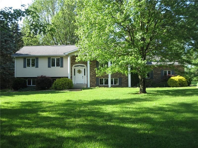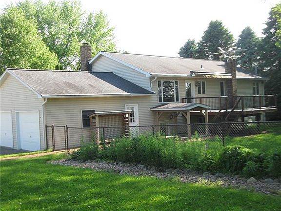 Sets back off the road for privacy. Large 3 Bedroom, 1 1/2 bath split on main floor with wide front entry. Includes finished "lower" level with a full eat-in kitchen, family room w/wood burning stove, full bath, large laundry room & 2 additional bedrooms, makes this a 5 Bedroom, 2.5 bath home with 2 full kitchens, 2 car attached garage, detached 24x24 garage & shed, back deck with roll up awning. Partially fenced yard and gazebo. This well constructed and well maintained home includes six panel doors.