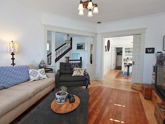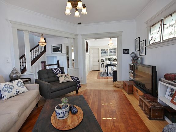 Completely remodeled and restored 1906 Historic Victorian home in the Wilmore Area. So many wonderful features to this home, from the spacious side garden with tons of hideaway spots to enjoy the cool Ocean Breezes. Farm sink to house all your beverages for a intimate garden party and tons of shade features that make the back and upstairs patio additional wonderful spaces to enjoy your morning coffee. Very private and incredibly landscaped. Moved to its current location sometime in the 80's-90's the new foundation of this home, created a permitted mother in law unit complete with 1 bedroom/1 bath and small kitchen on the first level. The subterranean windows create wonderful spaces for light to fill this entire floor and create privacy. The main home is over 1600 square feet, with three bedrooms and 1 bath. Both baths have stunning claw foot tubs, pedestal sinks and new tile work. The kitchen has restored cabinets, marble countertops and mosaic backsplash. Open floor plan LR and Dining room with original built in and wainscotting. Formal entry with beautifully restored stairway balustrade and laundry room complete the first floor with all the modern amenities. Gorgeous inset hardwood floors throughout the first floor. Painted and sealed hardwoods on 2nd floor of original home. Restored and updated chandelier lighting and all the original woodwork detailing. Exterior has been lovingly restored. Close to the Blue Line, downtown LB and fabulous Benbridge house.