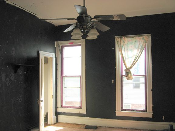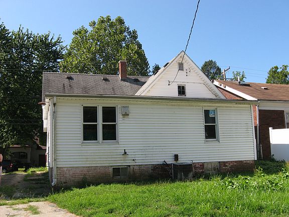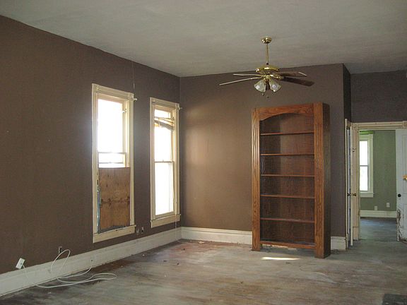 This early twentieth century bungalow may have seen better days but she is worthy of rehabbing. The home has large rooms and high ceilings, original woodwork that has been painted, and original wood floors (some hardwood and some soft) that need refinishing. The kitchen no longer has its original cabinetry, but it does have oak cabinetry now that is a much later addition.