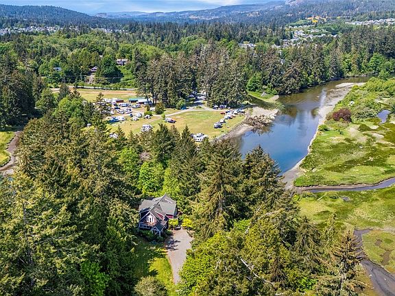 Discover a rare piece of Sooke’s history with this 7.29-acre waterfront peninsula, where the Sooke River meets the estuary. Held by the historic Milne family since 1883, this legacy estate offers a once-in-a-lifetime opportunity in an unparalleled natural setting. The 2,570 sq. ft. custom West Coast home, built in 2005, blends timeless design with modern comfort. Bright and open, it features coloured concrete floors with in-floor heating, quality craftsmanship throughout, and a flexible layout with a main-floor flex room and full bath. Upstairs, four spacious bedrooms each open onto a private balcony, framing sweeping views of the river and forested acreage. A true nature retreat, watch eagles soar, stroll through mature woodland, and take in the serenity from your own riverside plateau. Zoned RU2 with potential for up to three residences, this property offers endless possibilities for those seeking history, beauty, and modern living in perfect harmony.