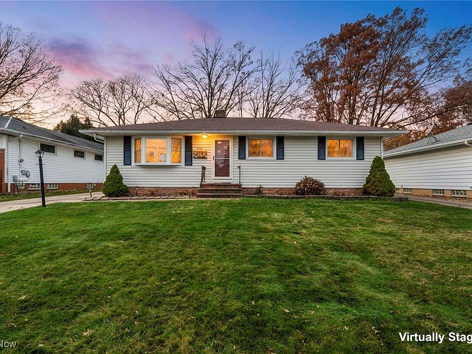 Updated and well-maintained ranch offering 1,124 square feet of comfortable, move-in-ready living. This inviting 3-bedroom home features 1 full bath and 1 half bath, with all appliances and window treatments included for added convenience. The main level offers a warm and cohesive flow, showcasing ceramic tile in the kitchen and bathrooms and beautiful hardwood floors throughout the living room, dining room, and bedrooms. Recent improvements include a new front door and storm door (2024) and a new water heater (2022), giving peace of mind to the next owner. Exterior features add both function and enjoyment, with a LeafFilter gutter system and a SunSetter awning providing shade over part of the back deck—perfect for outdoor relaxation. The home also includes a partially finished basement, with half of the space offering a versatile finished area complete with a mix of tile and carpet flooring.