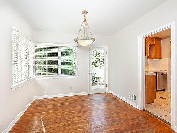 Charming, bright, and sunny home in Historic Carthay Circle! The home features a large living room with crown moldings and a gas fireplace, formal dining room, and a sizeable kitchen with a full size washer and dryer included. With hardwood floors and fresh paint throughout, the home has two master bedrooms each with newly remodeled en-suite bathrooms. The home is complete with a newly installed HVAC system, tons of storage, a gated front lawn, a private back yard with fruit trees, and 2 tandem parking spaces in a shared garage. A secure home with great curb appeal. Owner pays water.