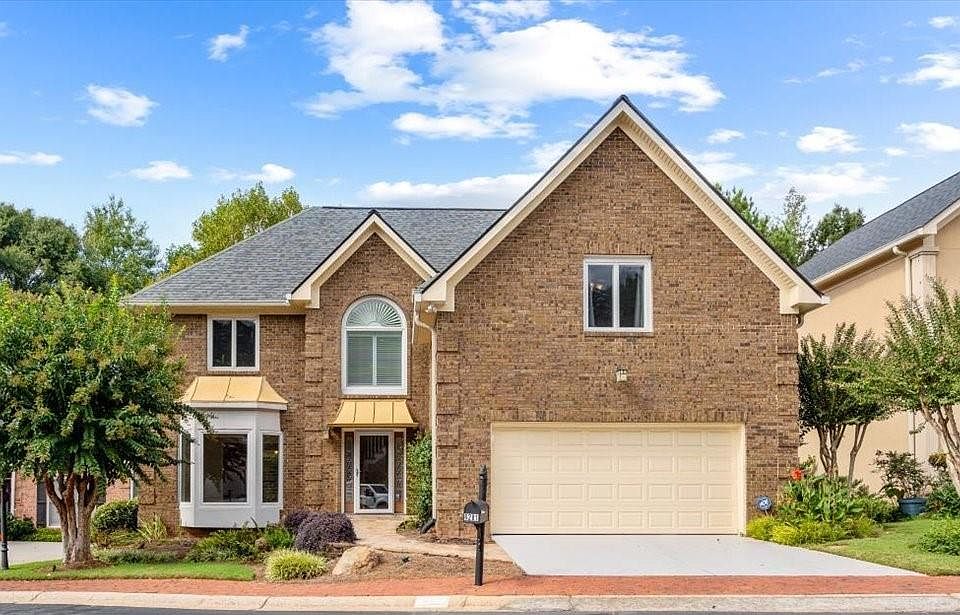 An impressive 4 bedroom brick home with 3.5 baths in a friendly upscale Peachtree Corners neighborhood with impeccable landscaping and beautiful brick sidewalks lined with lantern-style street lights. This home has the largest private backyard in Forest Hills with a relaxing waterfall and a bubbling urn for rest and relaxation. The main level features a two-story foyer that leads to a formal living room and dining room. They open to a sun-filled solarium where you can enjoy the natural beauty of the backyard or walk out to the private deck. The sunroom also serves as a breakfast room which opens to the large kitchen, featuring new GE Profile Monogram SS appliances and natural wood-stained cabinets. The kitchen is also open to the family room with a gas log fireplace and built-in entertainment center & shelving. Upstairs you will find a large master bedroom with separate vanities in the bathroom, a tiled shower, a separate whirlpool tub and a walk-in closet. There are two secondary bedrooms upstairs (one was used as an office) with a secondary updated full bath. The fully finished basement has tons of storage along with two bonus rooms, a gym, a spacious bedroom, an updated full bathroom, and a recreation room. The oversized 2-car garage provides even more storage or workshop area. Water and Landscaping are included in the HOA fee. Basement was waterproofed with a transferable warranty. Dehumidifier and air purifier in basement remains. Whole-house water filtration system also remains. Irrigation in front and back yards. Gutter-guards installed. Both the waterfall and the bubbling urn are turned off and on via remote control. BBQ grill on deck connected to natural gas line. Forest Hills is located just a short walk away from the LifeTime Athletic Club, which offers fitness, swimming, tennis, pickleball, and more. You are also close to the library, movie theater, wonderful restaurants, and shopping at The Forum, and the Peachtree Corners Town Green at the Town Center, which is a 2+ acre event lawn home to concerts, movies and other community events as well as children's play areas.