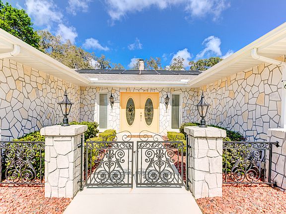 Click on virtual tour link below - You want a home that stands out? You’ve got it! Round about driveway, and gated courtyard create perfect curb appeal pulling up to the home. Double lot with a park like setting, beautiful oaks, and fruit trees create a serene setting. Built for energy efficient living. Extra insulation, two speed fans in attic, double insulated windows and sliders, and an Energy Miser water-to-air A/C unit complete with heat recovery package. Perfect for a large family, never run out of hot water! Nutone central vacuum system, and well serves irrigation system and water-to air A/C unit. With over 3000 sqft feet you have room to grow. Open living and dining room area. Double faced masonry fireplace can be enjoyed from either the family room or living room, and anchors the decor, creating warmth and appeal. Ignite your inner chef in the fantastic kitchen. Center island with flat top stove, or for simply grabbing a quick bite. Thermador exhaust fan in center of kitchen, and an overload of cabinet space. All bedrooms are a comfortable size and in their own “wing” of the home. Family room has Pella Designer slider doors flowing to the back lanai, perfect for entertaining, and the jewel of this wonderful home. High enclosure over diving board and water slide area, and sitting 8 feet deep, go ahead and make a splash! All details in this home truly need to be seen, to be appreciated. Make an appointment today!