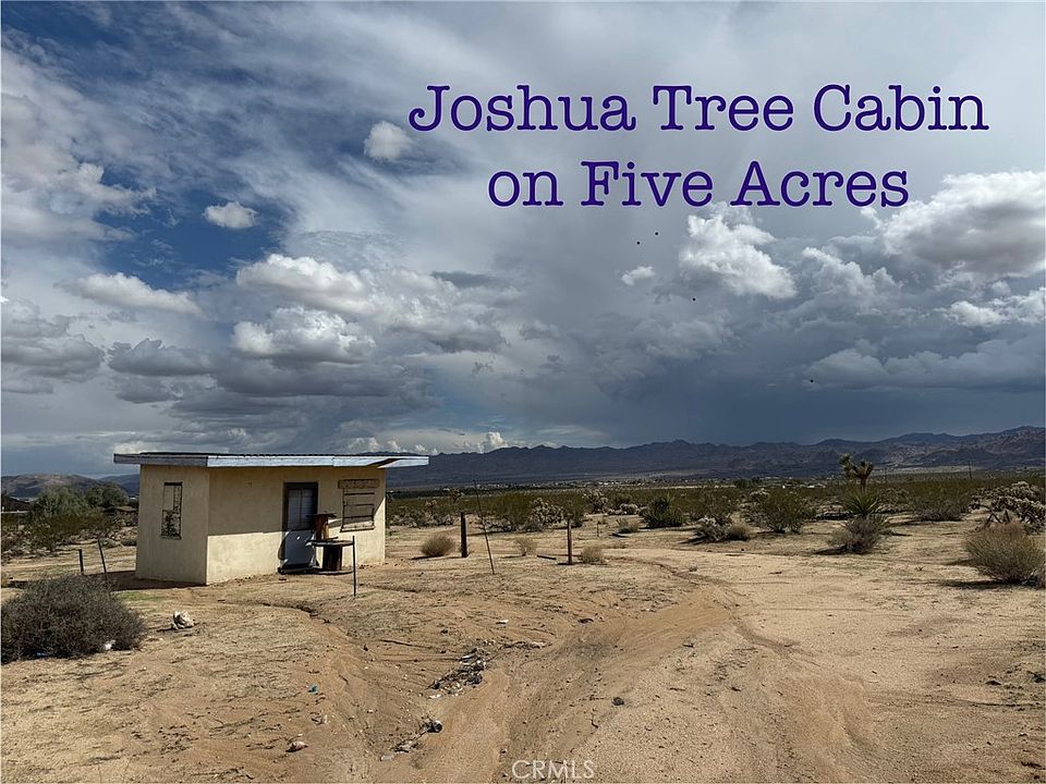 Wonderful opportunity to own five acres of the Mojave Desert in Joshua Tree California with a recreational cabin. Come discover this five-acre property close to the shopping, restaurants, and venues of the Village of Joshua Tree. The west entrance to the Joshua Tree National Park, and numerous Bureau of Land Management (BLM) public recreation lands are just a short drive away. The Cabin is offered sold as is. Electric power is available along Appian Way. The property is in the Joshua Basin Water District with water on Center Ave. to the east. Consider all the potential new uses for this cabin and acreage. This would make an extraordinary custom home site, artist or music studio, or weekend getaway retreat.