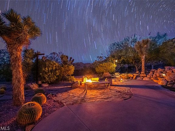 Introducing your dream home! This stunning property offers 5 bedrooms and 4 bathrooms, nestled on a remarkable five-acre plot that borders the awe-inspiring Joshua Tree National Park. With its prime location just 2 miles from the main entrance, you'll have convenient access to explore the natural wonders of the area. One of the highlights of this property is its active Airbnb status, presenting an excellent investment opportunity. Imagine indulging in ultimate relaxation in the extra-large custom pool and spa, complete with an infinity edge and mesmerizing spillways, in addition to any of the three out door fire pit features. The beautifully landscaped yard provides an ideal space for entertaining loved ones, featuring a private BBQ island for delightful outdoor gatherings. This home features magnificent floor-to-ceiling windows throughout; allowing for breathtaking views of the starry night sky and majestic sunsets and sunrises. Additionally, the master suite offers an en-suite bathroom, providing a luxurious retreat in the expansive walk in stone shower complete with multiple shower heads and heated flooring, adding an extra touch of comfort and luxury to your daily routine. You'll also find an attached oversized casita or game room, perfect for additional living space or another master suite with an en-suite bathroom. But that's not all! This home is equipped with very affordable leased solar panels, ensuring both energy efficiency and significant cost savings. The tankless water heater guarantees endless hot water, and you'll even find an EV charging port for your electric vehicle. Don't miss out on this incredible chance to own a slice of paradise. Contact me now to schedule a viewing and make this your new home sweet home! Can be sold fully or partially furnished ! "Buyer to verify zoning, utilities, permits, lot size, square footage, and tax information on record. All information deemed reliable but not verified/guaranteed."