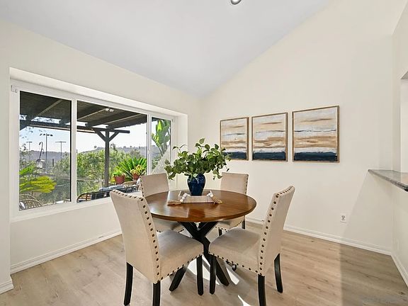Cozy wood-burning fireplaceSunlit en-suite bathExpansive windowsSleek cabinetrySpacious primary suiteBackyard overlooking tecolote canyonFreshly painted interior