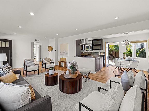Discover a gem by Lake Los Carneros and near Stow Grove Park - this beautifully remodeled 1-story home offers a level of comfort and upgrades not expected in the price range. The countless updates include designer kitchen and baths, new wide-plank luxury flooring throughout, newer windows, newer utility systems and newer roof. The floorplan features an open layout, and a reconfigured and enlarged primary bedroom suite with high ceilings, fireplace and built-in projector TV system. Central air conditioning and solar power are installed (solar lease can be bought out for ~10K). Ample front and back yards include lawn areas, specimen palm trees, citrus, a large producing Haas avocado tree, and a spa tub. Great neighborhood, Guava Avenue is a low-traffic 1-block street. Move right in!