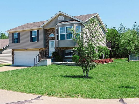 This home, sitting on a corner lot, is simply lovely! Very well maintained 3 bedroom, 2 bathroom with beautiful upgraded flooring throughout is move in ready and waiting for it's new family! The living room hosts a bay window and is open to the dining room. The dining room supports a patio door and is open to the fantastic kitchen with all matching stainless steal appliances. Water softener is a commercial grade softener. There is a lot of closet space and extra storage in the lower level. The master bedroom is huge with enough room to support a king size bed with a dresser and a night stand. The other 2 bedrooms are large as well. The family room on the lower level is beautifully done and could be converted to a sleeping area. The two car garage has a mini split heating/cooling unit, great for our Missouri weather; as well as an extended driveway. The level yard is large and has a utility shed and plenty of room for the children to play. This one is a must see!