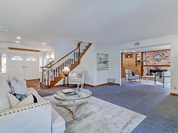 Stunning Cape Cod inspired San Carlos’ home with red brick wainscoting and blue siding. Located within a short walk to Lake Murray, grocery stores, restaurants, award winning schools, while having a short commute to San Diego attractions and downtown. A few of the homes beautiful upgrades include: Paid solar, private sitting porch, three car spacious garage, mature palm trees and vegetation, recessed indoor and exterior lighting, custom oak built-in dual hutches and family room entertainment center, coffered dining room ceiling,