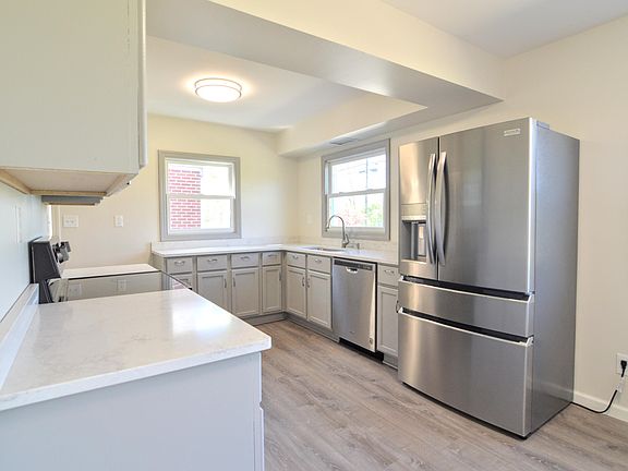- Features: Eat-in Kitchen, Wood Cabinets, Solid Surface Counters, Luxury Vinyl Flooring