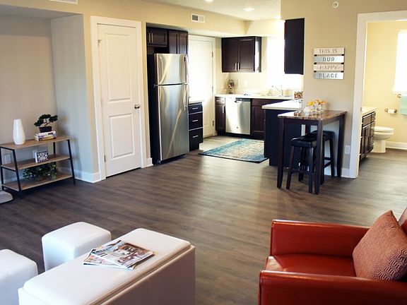 Each kitchen is well-equipped with abundant storage, and an additional storage closet is located in the living room for added convenience. Stainless steel appliances make it easy to maintain a clean, modern living space. Most apartments also include an in-unit washer and dryer for added convenience. Included in your rent will be a detached single space parking garage spot, Wi-Fi, a cable package, refuse, and overflow parking if needed. You will be responsible for setting up your own heat and electric.