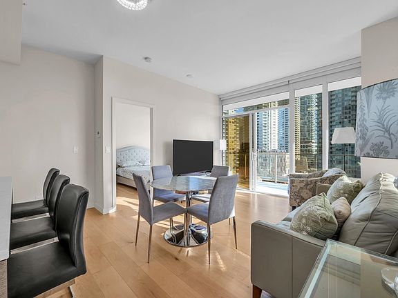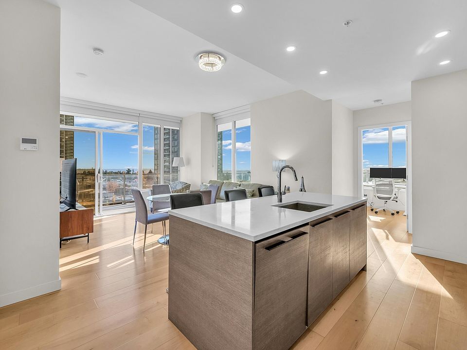Experience luxury living in this like-new 3-bedroom, 2-bathroom corner residence located in the heart of Metrotown. Positioned on the southeast corner, this home is filled with natural light and features wraparound balconies offering breathtaking panoramic views of the mountains, ocean, and city. The open-concept kitchen boasts cabinetry, integrated Bosch appliances, and is designed so you can enjoy the view from every room. 9-foot ceilings create an enhanced sense of space, while laminated hardwood flooring throughout ensures both elegance and easy maintenance.Enjoy the convenience of 24-hour concierge service and over 11,000 sq. ft. of premium amenities. Just steps to Metrotown SkyTrain Station, Metropolis at Metrotown, the public library, banks, and a wide selection of restaurants.