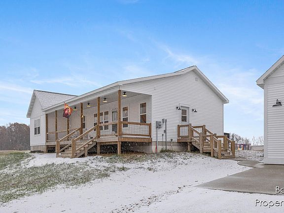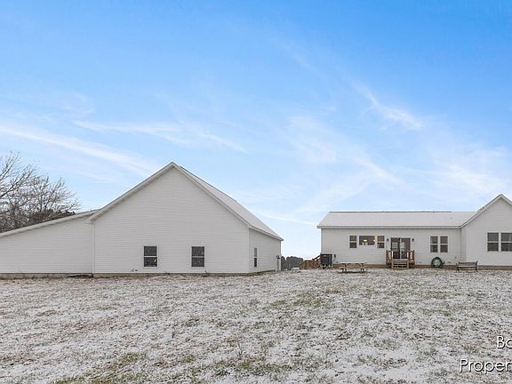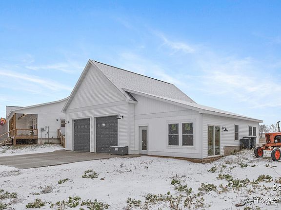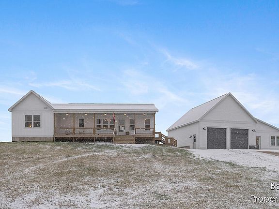 Introducing this newer beautiful 4-bedroom 2-bathroom home nestled on nearly 16 rolling secluded acres. Complete with 7+ acres of electrified fencing ideal for horses and livestock animals. A hilltop home location with scenic views and a sizable garden with planted apple trees, pears, cherries, and plums. Loaded with charm this 2023 built home offers a kitchen with a marble island, 36' range with pot filler, plenty of cupboard space for added convenience. Open living room/dining area layout with beautiful, sealed wood flooring and open views to front and backyard. This home also offers a spacious 30x40 garage accommodating up to 4 vehicles with a convenient future guest quarter offering a bedroom, living room, kitchenette, and bathroom that is more than roughed in with initial permits pulled / approved. Additional amenities include central air, dual vanity sinks, tankless water heater, tile shower, covered porch and a 18x20 livestock barn. Only 5 miles to downtown Pentwater!