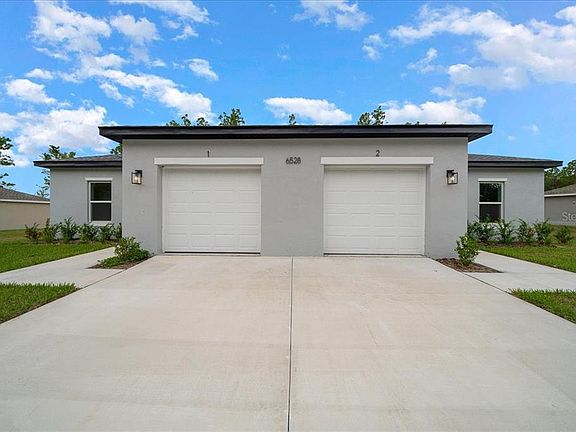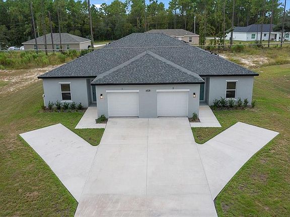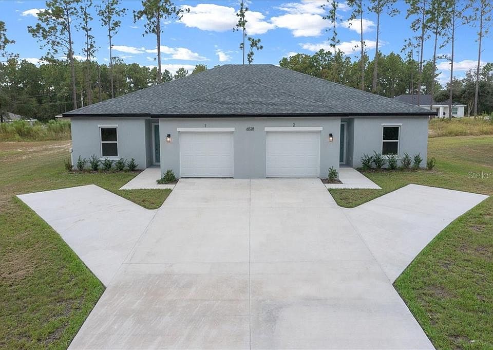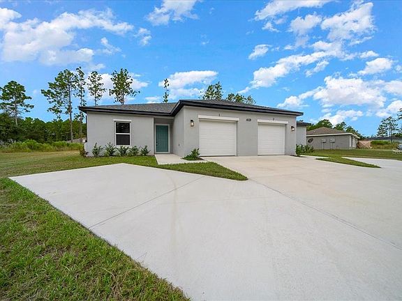 This brand-new duplex is a fantastic opportunity for an investor to rent out both sides or for a buyer to live in one unit while leasing the other. Priced below recent appraised value, it offers instant equity and income potential. Each unit features a one-car garage and a covered lanai, along with beautiful touches like soaring ceilings, luxury vinyl plank flooring, and tile backsplashes that extend to the ceiling in each bath. The kitchens are designed for both style and function, complete with granite countertops, an island with a spacious eating area, and an open view into the living room that makes entertaining easy. With every detail thoughtfully designed with quality finishes, this property blends modern finishes with smart functionality and is ready to generate immediate value for its new owner. Three additional duplexes just like this one are also available in Marion Oaks, offering an unbeatable location close to I-75, shopping, and professional parks, making this a rare multi-property investment opportunity.