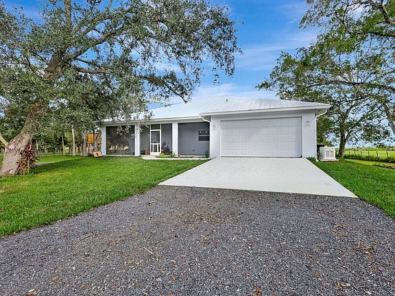 Beautiful new 2 Bedroom, 2 Bath home in the country! Home sits on approximately 2 Acres with horse stalls. Screened in wrap around porch, impact windows, whole home generator. 2 car garage, pad for your boat or trailer. Very quiet. 25 minutes to hunting and fishing in Okeechobee or 20 minutes to the beach!