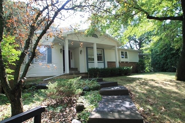 Private wooded retreat! Elegant ranch with tree house like views is nestled amongst tall oaks & abundant perennials. Features include: Double-sided fireplace, vaulted ceilings, kitchen with breakfast bar, & access to screen porch. Large master suite with separate soaking tub, walk in closet, & a great back yard view. Huge rec room in lower level & additional room that can be used as a workshop, storage for 2 more cars, or easily convert back into living space.