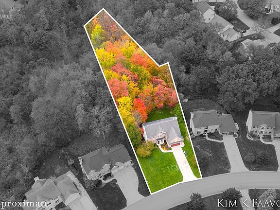 ADA WOODS GEM! This spectacular well-cared for home oozes with pride of ownership & sits on a spectacular .7 acre lot with an abundance of mature woods out back & all within easy close distance to all that the nearby village of Ada affords! Inside awaits House Beautiful featuring stunning kitchen with lovely bay windowed eating area, LR with fireplace + built-ins, Formal Dining + versatile main floor Flex Room currently used as home office, you'll also love the 34x15 maintenance free back deck! Upstairs are 4 nice sized bedrooms including Primary Suite with his/hers walk-ins & gorgeous Primary Bath with his/her sinks, soaking tub & handsome glass shower + convenient 2nd floor laundry! The walkout basement is built for entertaining featuring FR with beautiful kitchenette/wet bar, full bath & amazing home theater room that could also serve as a 5th bedroom or Bonus Room if so desired. Furnace & water heater 2019, garage EV charger, invisible dog fence front & back + more. LOVELY!