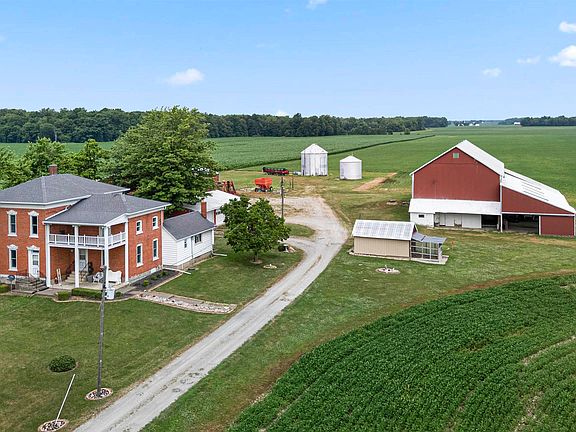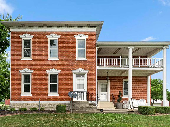 Step back in time with this beautifully updated all-brick Colonial home built before 1900, perfectly nestled in a serene country setting. Surrounded by mature trees and breath taking sunsets, this charming residence offers timeless elegance with modern comforts. Inside, you'll find three spacious bedrooms and two and a half baths, all enhanced by stunning new hardwood flooring throughout. There is a possible 4th bedroom or Bonus room with door to a balcony where you can catch gorgeous views of the Sunsets! The home includes a spacious three car garage with an extended area ideal for a workshop-perfect for DIY projects, hobbies, or extra storage. For larger equipment and storage needs, there's a versatile pole barn ready to accommodate anything from vehicles or large farm machinery. Adding even more character to the property is a historical Heritage barn- an incredible asset for or anyone interested in farming, livestock or simply appreciating a piece of agricultural history. Whether you're looking for room to grow, space to work, or a slice of country living, this property offers endless opportunities.