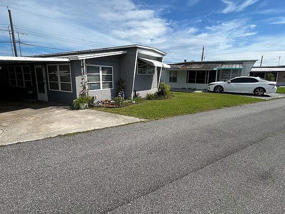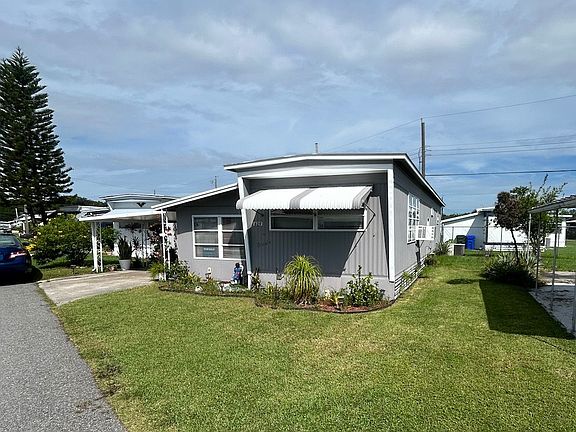 WELCOME TO THIS WELL-MAINTAINED 2-BEDROOM, 1-BATHROOM HOME LOCATED IN A CHARMING GATED COMMUNITY!! This home features an open layout connecting the kitchen, dining area, and living room. The kitchen is equipped with a modern backsplash and updated cabinetry - however, NO appliances will remain. Continuing down the hallway, the main bathroom offers plenty of countertop space and includes a tub/shower combination. Off the dining room is a spacious sunroom, perfect for sipping your morning cup of coffee or unwinding in the evening after a busy day; the refrigerator in the sunroom will remain and can be relocated to the kitchen. Throughout the home, you will find beautiful vinyl plank flooring with no carpeting. Outside, you will find an extended driveway that accommodates multiple vehicles. If you are searching for your next snowbird retreat, look no further. Make this home yours today! **Home is sold unfurnished.** Holiday Park is a vibrant 55+ community, allowing residents to embrace a fulfilling retirement experience. Take a revitalizing swim in the heated pool, relax for hours in the library with an enjoyable book, bring your dog to explore the dog park, or meet up with friends during one of the numerous social activities hosted by the park. These are just a few of the many options available to the residents of Holiday. Spend the day at the beach, plan a shopping trip, or enjoy a day at one of the many attractions accessible to you from this central location between Orlando and Tampa. This pet friendly park allows up to 2 pets with breed restrictions. Lot rent of $900 includes water, sewer, trash, internet & cable. KITCHEN: 8.5 x 11 • Vinyl Plank Flooring • Ceiling Fan with Light • Updated Backsplash • Updated Cabinets • Pantry - 1 • **NO APPLIANCES STAYING** DINING ROOM: 8 x 11 • Vinyl Plank Flooring • Chandelier LIVING ROOM: 18 x 11 • Vinyl Plank Flooring • Chandelier MAIN BATHROOM: 6 x 6 • Vinyl Plank Flooring • Single Sink • Tub/Shower Combo • Medicine Cabinet • Linen Closet MASTER BEDROOM: 11 x 12 • Vinyl Plank Flooring • Ceiling Fan with Light • Standard Closet GUEST BEDROOM: 9.5 x 11.5 • Vinyl Plank Flooring SUNROOM: 10 x 22 • Vinyl Plank Flooring • Refrigerator - Whirlpool • Located Off: Dining/Living Room DETACHED SHED/LAUNDRY ROOM: 5 x 8 • Concrete Flooring • Washer - Kenmore • Dryer Hookup EXTERIOR: • Aluminum • Single Pane Windows • Carport: Single • Roof Type: Metal • Window A/C Unit COMMUNITY: • Gated • Clubhouse • Heated Pool • Library • Dog Park • Putting Green • Cornhole The above information is not guaranteed. It is the buyer's responsibility to confirm all measurements, fees, rules and regulations associated with this particular park. This mobile home is sold "As Is" as described in the description above. There are no warranties or guarantees on this mobile home.
