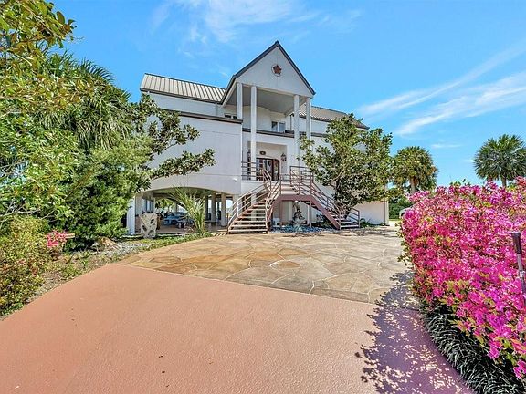 Discover unparalleled luxury in this sophisticated contemporary residence. Situated on over half an acre, this prized property boasts sweeping 180-degree panoramic views of Galveston Bay throughout the walls of windows with hurricane shutters accenting every room. The meticulously designed sandy brown and ocean blue accented walls paint this 3-bedroom, 3.5-bathroom home, ideal for both private enjoyment and elegant entertaining. The residence features lush landscaping, a private pier and balconies, and an accessible elevator to all three levels. The chef-inspired kitchen features a substantial L-Shaped island with a built-in grill, gas, and electric burners, top of the line stainless steel appliances, and double sinks. Custom built-in cabinetry and storage enhances the home's functionality. Located conveniently between Galveston and Houston, this remarkable property also includes a generator, hurricane protection, and automated systems that make maintaining the property a breeze.
