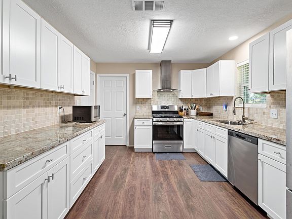 Beautifully updated 3-bedroom, 2-bath, 2-car-garage home with stylish updates throughout! The bright kitchen features GE appliances, granite countertops, with stylish tile backsplash, range hood, and white shaker cabinets. Bathrooms feature granite vanities, tiled showers/tub, and updated fixtures. Enjoy dual-glazed windows, laminate and carpet flooring, and fresh finishes inside and out. Step outside to a serene backyard with a covered patio, new fence, and a majestic oak tree — perfect for relaxing or entertaining. Ideally located just 30 minutes from Beaumont, Baytown, or the beach! East Chambers Schools.