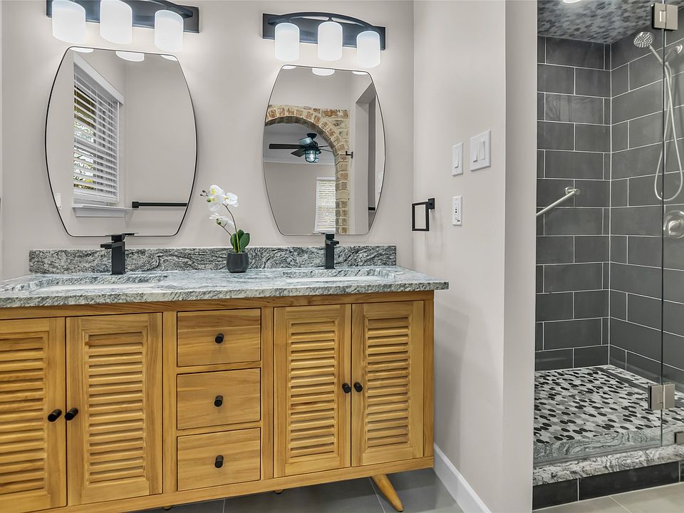 Updated & Move-In Ready Southlake Living Under $1M. Discover this beautifully renovated 3-bedroom, 2-bath home on a peaceful, expansive backyard with no HOA restrictions. Nearly half-acre lot just a short walk to Florence Elementary (Keller ISD). This property is eligible for Carroll ISD open enrollment. Inside, you’ll love the open floorplan connecting the spacious living room, kitchen, and dining area. The whole-house renovation includes recently installed kitchen cabinets, vanities, plumbing fixtures, countertops, and appliances. Premium finishes such as wood look flooring, ceramic tile, teak vanity, upgraded dovetail soft-close cabinetry, and natural stone surfaces including granite, marble, and slate. Quality lighting upgrades with dimmers, remotes, recessed lights, undercabinet lighting, and ceiling fans. Smart home wiring for Ethernet, WIFI, and TV in all bedrooms and living areas. Recent utility upgrades include septic to sewer conversion (2019), natural gas installation (2020) for kitchen range, HVAC, and water heater, plus fresh exterior paint 2024.