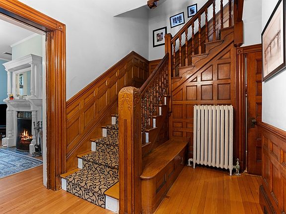 Revel in the essence of urban living with this 5 bedroom, 2.5 bath, 4 level turn of the century residence in the heart of Newton Centre. Built in 1900 as a two-family property, this 2 unit condominium offers an open expansive front porch and separate entrance, soaring ceilings, stained glass windows, built-in cabinets, classic woodwork and original hardwood flooring. Updates include central air, gas heat, insulation and on-demand hot water. In addition to the 5 bedrooms, there is a home office/nursery located next to the primary bedroom, as well as potential for a full au-pair suite in the lower level. A stunning exclusive use rectangular pool (16x32) brings additional beauty and elegance to a tranquil retreat providing another space to entertain friends and family. A dedicated garage space along with additional parking spots are accessed via the adjacent carriage lane. Enjoy easy access to Newton's finest dining and shopping destinations, I-90, Boston and more.