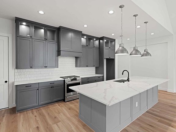 THE BRENTWOOD IS A BOASTING BEAUTY! This Split Plan Single Story offers it all with 4 Bedrooms, 3 Bathrooms, a Study w/ Storage, a central Flex Room, Oversized Covered Patio + 2 Car Garage. Enormous Quartz Island Kitchen w/ Adjacent Casual Dining is Open to the Vaulted Ceiling Family Room leading out to the Outdoor Living Space! Exquisite Owner's Retreat offering free-standing bathtub with dual vanities, & large walk-in closet! Secondary Bedroom offers convenience to Flex Room. Private Study located off Foyer. Stainless Steel Appliances, 2" Blinds, Upgraded Wood Tile Flooring, Security System, Sprinkler System, Fully Sodded Yard + Landscaping Pkg all included! This home also includes a fireplace & upper cabinets with glass doors & lights!