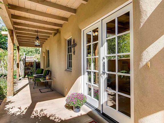 Location! Location! This sunny 2 bedroom, 2 bath charming adobe with high ceilings, 2 fireplaces, private courtyard and portal, 2 off street parking spaces, built in 1998, is truly an east side gem. Located in Casa Sombra, just up the street from the Plaza, a short stroll to La Posada, a beautiful full time home or incredible part time residence with short term rental possibilities. Unit 4 COA Annual fees of $2,251.00 include: landscaping, snow removal, insurance, water for outdoor use, and front wall upkeep. Unit #5, a 1 bedroom, 1 bath adobe is also available below appraisal for $399,000 (MLS#201704640).