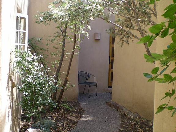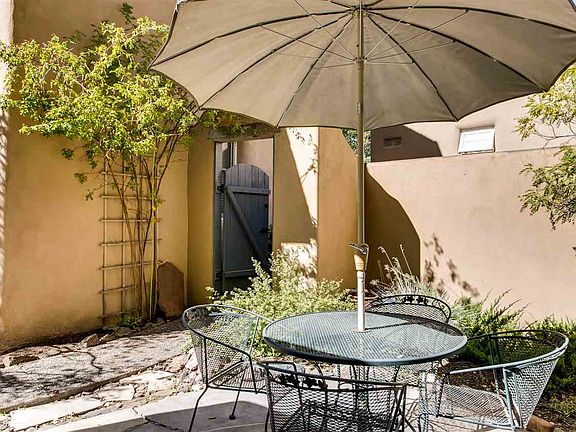 Hidden Gem built in 1998 on the Historic East Side! Thick adobe walls, new stainless appliances, diamond plaster, 2 FP, saltillo tile, private courtyard behind a lovely gate & stucco walls. This sweet 1 bedroom, 1 bath condo is a perfect and private downtown, pied-de-terre. This unit was built in 1998 and stands where the compound's chicken coop used to be! Casa Sombra HOA annual fees are $1,355.00 for Unit 5 include: landscaping, snow removal, insurance, water for outdoor use, and front wall upkeep.