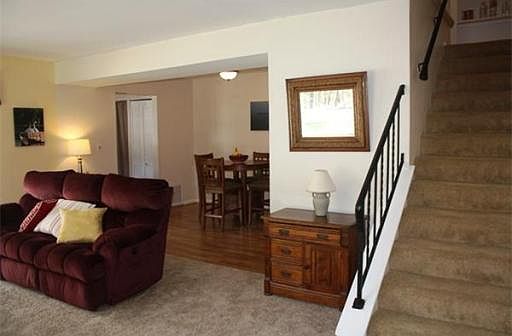 Lovely light filled townhouse overlooking the lawn. Featuring updated baths, dishwasher, compactor, Harvey Replacement windows and sliders, young furnace, central air. Living room has new carpeting with access to brick patio. Second level has 3 bedrooms, ceiling fans, and master with sliders to balcony/deck. Garage. Convenient to #290 and #140.