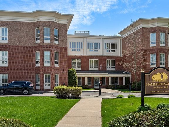 Spacious Urban Oasis at The Hammondswood of Chestnut Hill.You will love this beautifully maintained, sunny, 2 bedroom plus study/den, 2 full bath and in unit W/D. This condo features 9' ceilings,crown molding & gorgeous hardwood floors throughout.The modern kitchen has stainless steel appliances,gas range,granite countertops & generous cabinet space. There are two marble bathrooms, one being ensuite in the master bedroom with plenty of closet space.There is a private ,enclosed patio off the master bedroom.This professionally managed building is close to The Street which features shops,restaurants,food shopping,transportation. There is an easy commute into Boston and to suburbs and 128 area.