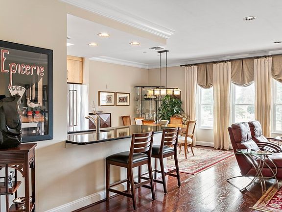 Welcome to The Hammondswood at Chestnut Hill! Filled with natural light, penthouse is one of the largest units in the complex, has two assigned garage parking spaces and elevator access, private storage, and the gym. As you walk into the unit you immediately notice a spacious foyer, large windows connecting dining room and living room, custom kitchen with oversized quartz countertop peninsula, tons of storage space and beautiful backsplash. The layout of the penthouse is very well divided; open concept living and dining, two bedrooms, spacious guest bath and a powder room, room for an office or potential 3rd bedroom. The primary suite has a sitting area perfect for reading, a walk-in closet space, and a spa-like bathroom w/ a double vanity & oversized custom tiled shower. The unit has central HVAC, brand new water heater, laundry hook up and hardwood flooring.