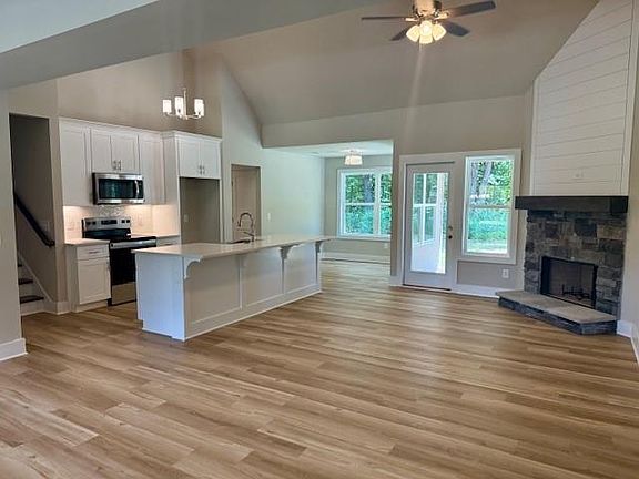 Brand new construction 3-bedroom, 2-bathroom ranch-style home offering comfort, convenience, and one-level living. Step inside to an inviting open-concept layout featuring a spacious living room with abundant natural light, a functional kitchen with white cabinetry and quartz countertops, and a cozy dining area perfect for family meals or entertaining guests. The primary bedroom includes a private bathroom with double vanities and a nice tile shower. Two additional bedrooms share a full hall bath ideal for family, guests, or a home office. This home also has a finished bonus room above garage to provide additional living space. Outside, enjoy a large backyard, perfect for relaxing or gardening, along with a covered back porch for outdoor relaxing.