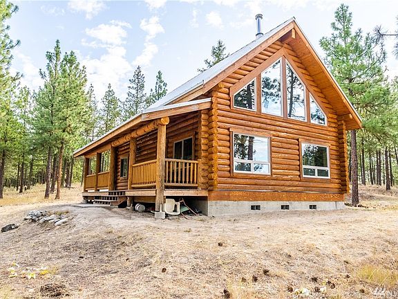 Here is the cabin you have always wanted. Solidly-built Timberline log home built with Swedish coping logs, reinforced with rebar & foam insulated between logs. Rustic charm with modern infrastructure, including Pex plumbing & heat pump. The kitchen is open to the dining & living area & log steps lead to the loft bedroom. A full bath is located across from the main bedroom & the utility room has a washer/dryer. Enjoy views of Lake Chelan & Mission Ridge from your own 10 acres!