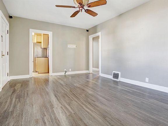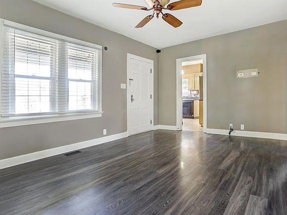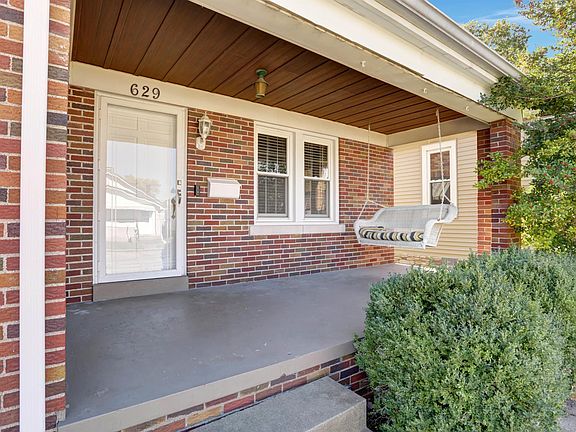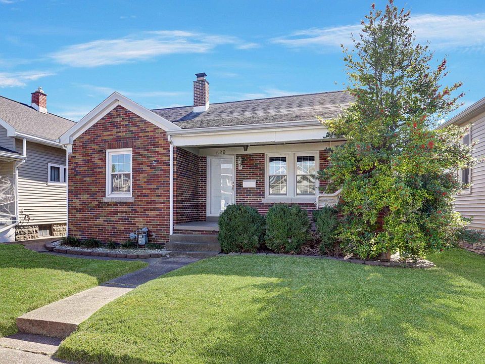 Love where you live! Welcome home to this charming 2-bedroom, 1.5-bath brick bungalow that exudes character and curb appeal! Step onto the covered front porch and into a spacious living room that features beautiful LVP flooring and is filled with natural light. The eat-in kitchen boasts a tiled backsplash, breakfast bar seating, and an abundance of storage and countertop space, perfect for any home chef. Two cozy bedrooms and a full bath with a classic pedestal sink complete the main floor. Head downstairs where the basement staircase is adorned with reclaimed wood that leads to a versatile rec room featuring an electric fireplace, a bar with seating, a kitchenette, and a half bath—ideal for entertaining. The finished basement also offers a large office space and a storage room with washer and dryer connections. Enjoy the outdoors in the backyard or relax on the covered porch off the detached 2.5-car garage, perfect for additional seating or entertaining space. This bungalow is full of charm, comfort, and functionality. Seller is related to listing agent.